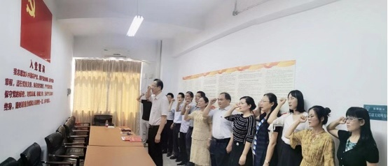9月27日下午,教工第一、第三党支部十五位党员在学院党委委员、院长邵宜的带领下重温入党誓词。党员同志高举右拳,字字铿锵,重温入党时的决心。邵宜向各位党员提出要求,希望各位党员在主题教育中立足本职,放眼全局,维护党的纪律,提高政治觉悟,坚定理想信念。