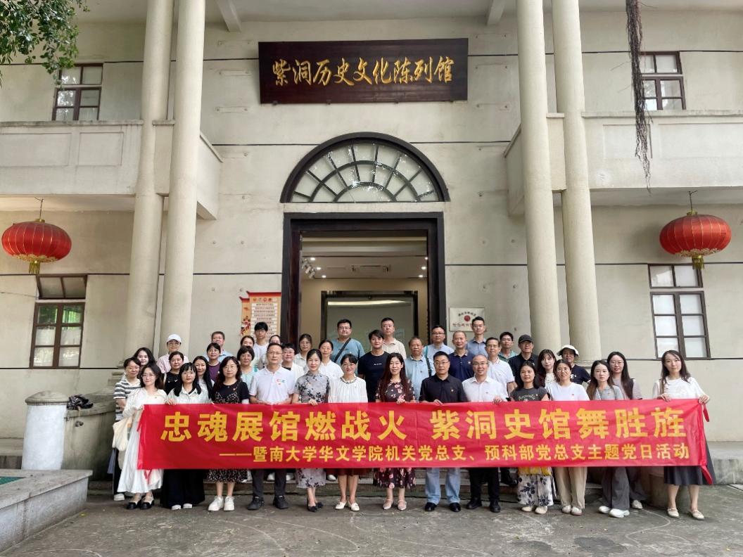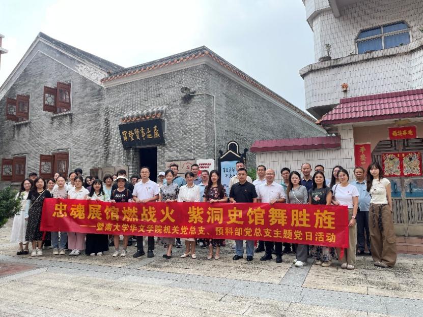 为传承红色基因,赓续红色血脉,进一步强化党员们的理想信念与家国情怀,10月16日下午,暨南大学华文学院机关党总支、预科部党总支联合开展以“忠魂馆内燃战火,紫洞堂前舞胜旌”为主题的党日活动,组织党员教师们专程前往佛山市禅城区,走进罗登贤事迹展览馆与紫洞历史文化陈列馆,带领全体党员在实地学习中接受精神洗礼、凝聚奋进力量。