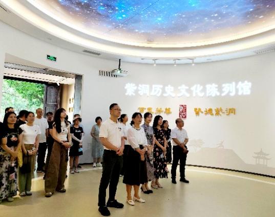 第二站,党员们来到紫洞历史文化陈列馆,开启了探寻本土文脉、感受时代发展的文化之旅。紫洞历史文化陈列馆以千年紫洞历史文化为基础,全面展示了紫洞村的历史沿革、自然地理、山川风貌、经济发展、对外交通、文化教育、文物古迹、民俗风情,是传承紫洞村优秀传统文化及厚植村民们热爱祖国、热爱家乡情怀的重要载体。
